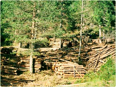 °Acopio de madera apilada tras claras y clareos.
